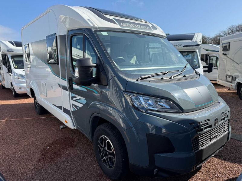 2025 Swift Ascari 344 Motorhome4 Berth | 4 Seatbelts | 140hp Automatic | 6m Length | Rear U-Shaped Lounge | Drop-Down Double Bed Experience the perfect blend of compact design and spacious comfort with the 2025 Swift Ascari 344. Measuring just under 6 meters in length, this coach-built motorhome offers the agility of a panel van while providing the amenities of a larger vehicle. Key Features: Sleeping Arrangements: Rear U-shaped lounge that converts into a double bed, complemented by an electric drop-down double bed above, accommodating up to four people comfortably.Engine Drive: Powered by a 140hp 2.2L Euro 6D diesel engine paired with an automatic transmission, ensuring a smooth and efficient drive.Living Space: Modern interior with a fully equipped kitchen, including a gas hob, oven, grill, microwave, and fridge-freezer. The wetroom-style en-suite offers convenience on the go. Comfort & Convenience: Features like cab air conditioning, cruise control, DAB radio with Apple CarPlay™/Android Auto™, and a panoramic sunroof enhance the travel experience. Outdoor Living: Equipped with a Thule awning, external BBQ point, and solar panel, making it ideal for off-grid adventures.With its thoughtful design and comprehensive features, the Swift Ascari 344 is perfect for couples or small families seeking adventure without compromising on comfort. Finance Available.