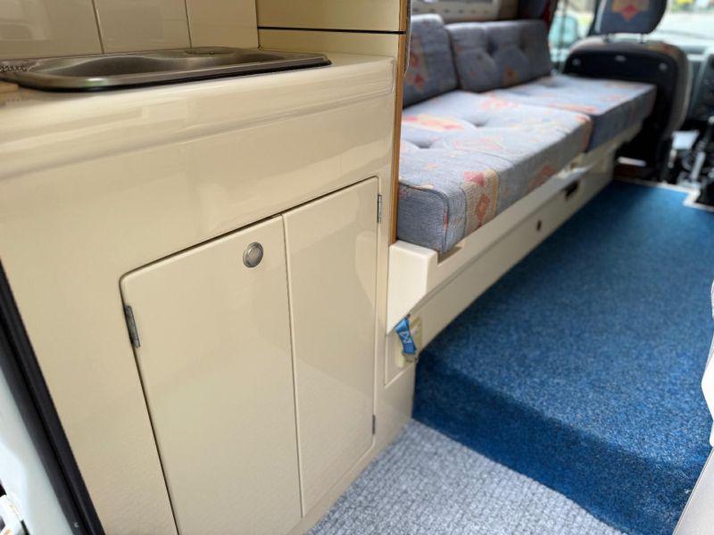 Compact 2 berth with plenty of space internally. The lounge can be kept as two single beds or arranged into a double. This vehicle is not eligible for finance.